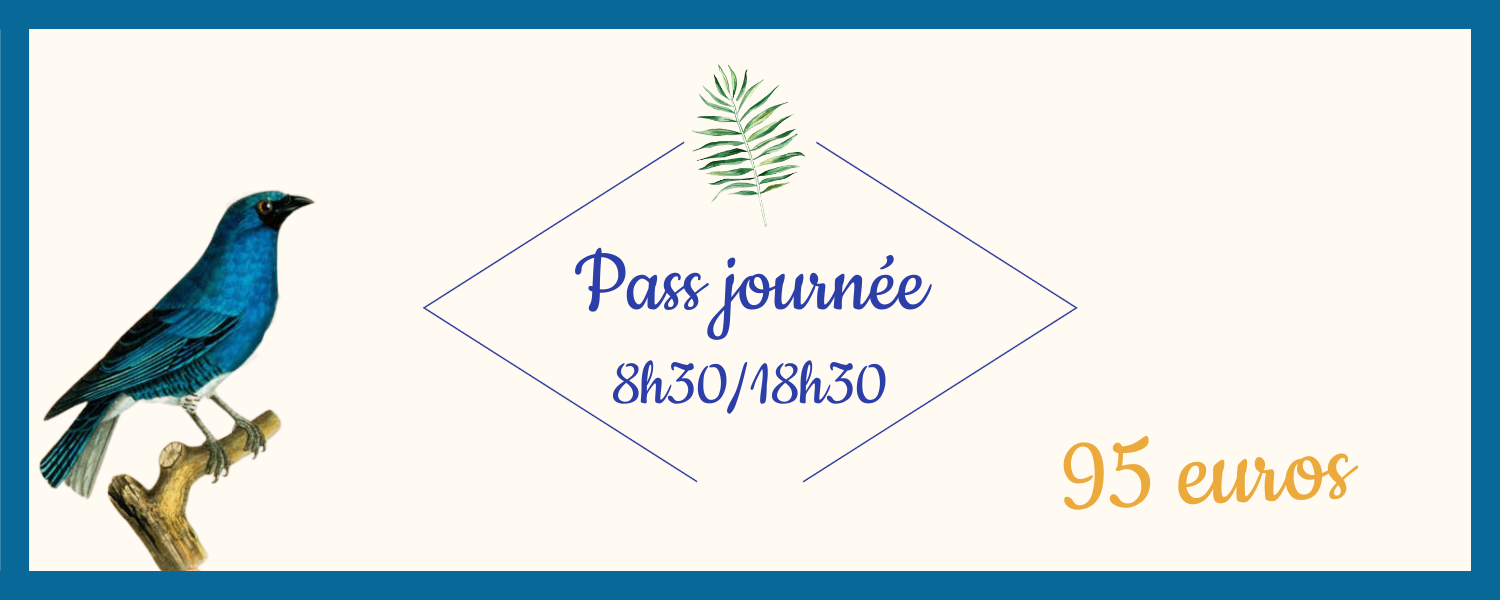 Children are registered for a full day. They can arrive between 8:30 and 9:20 am and leave between 4:30 and 6:25 pm.